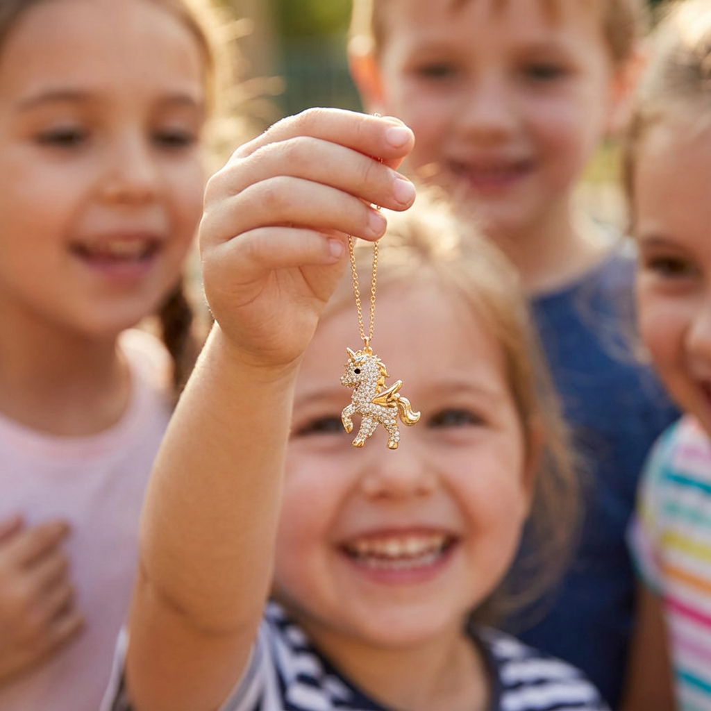 Le collier licorne est recommandé pour les enfants à partir de 3 ans. Il convient parfaitement aux petites filles de 4 à 10 ans.
